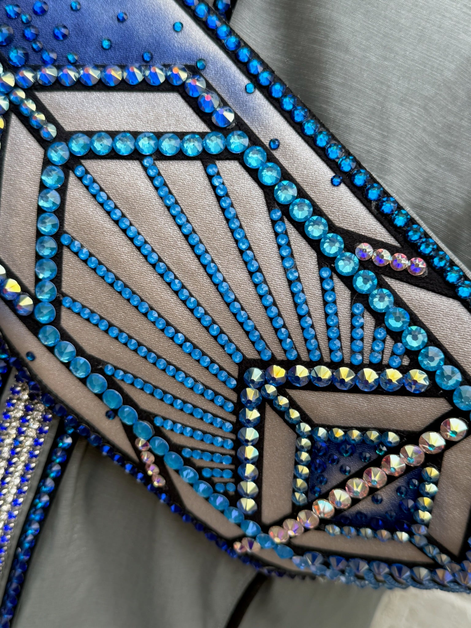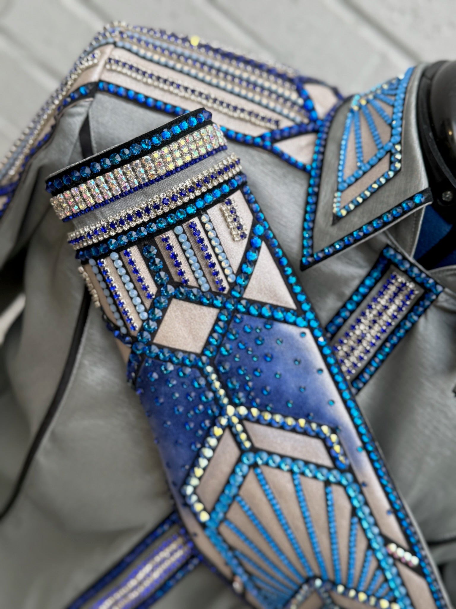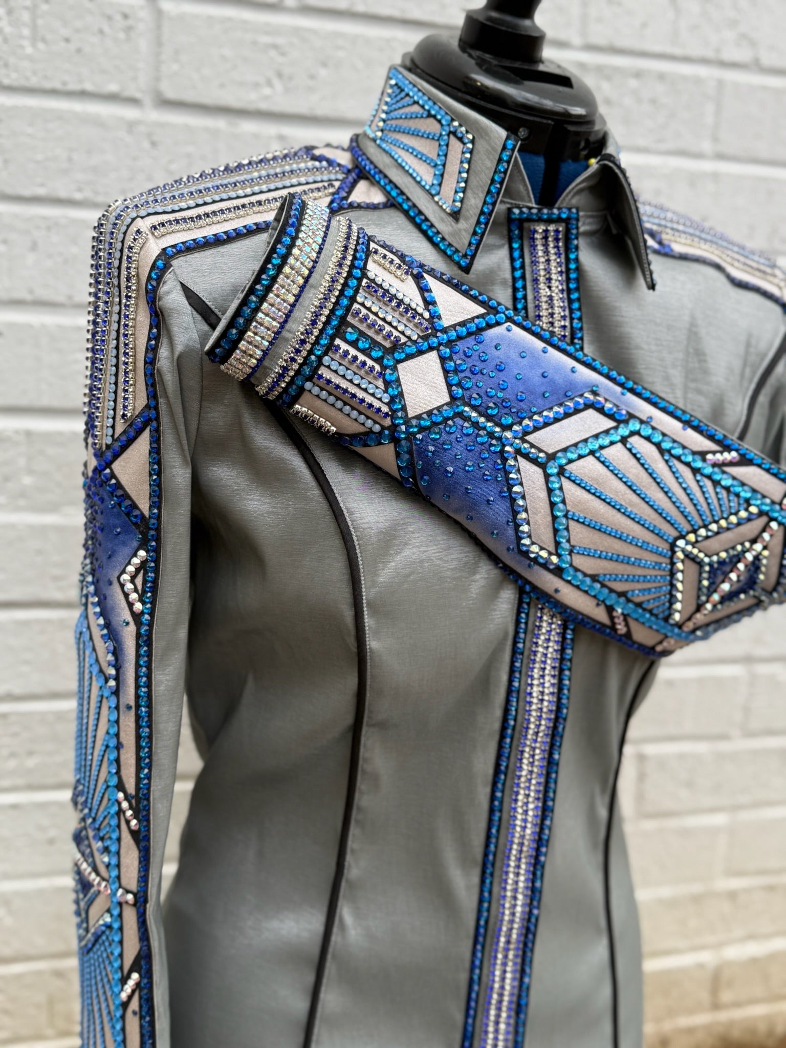 Platinum stretch taffeta base day shirt with shades of blue accents.