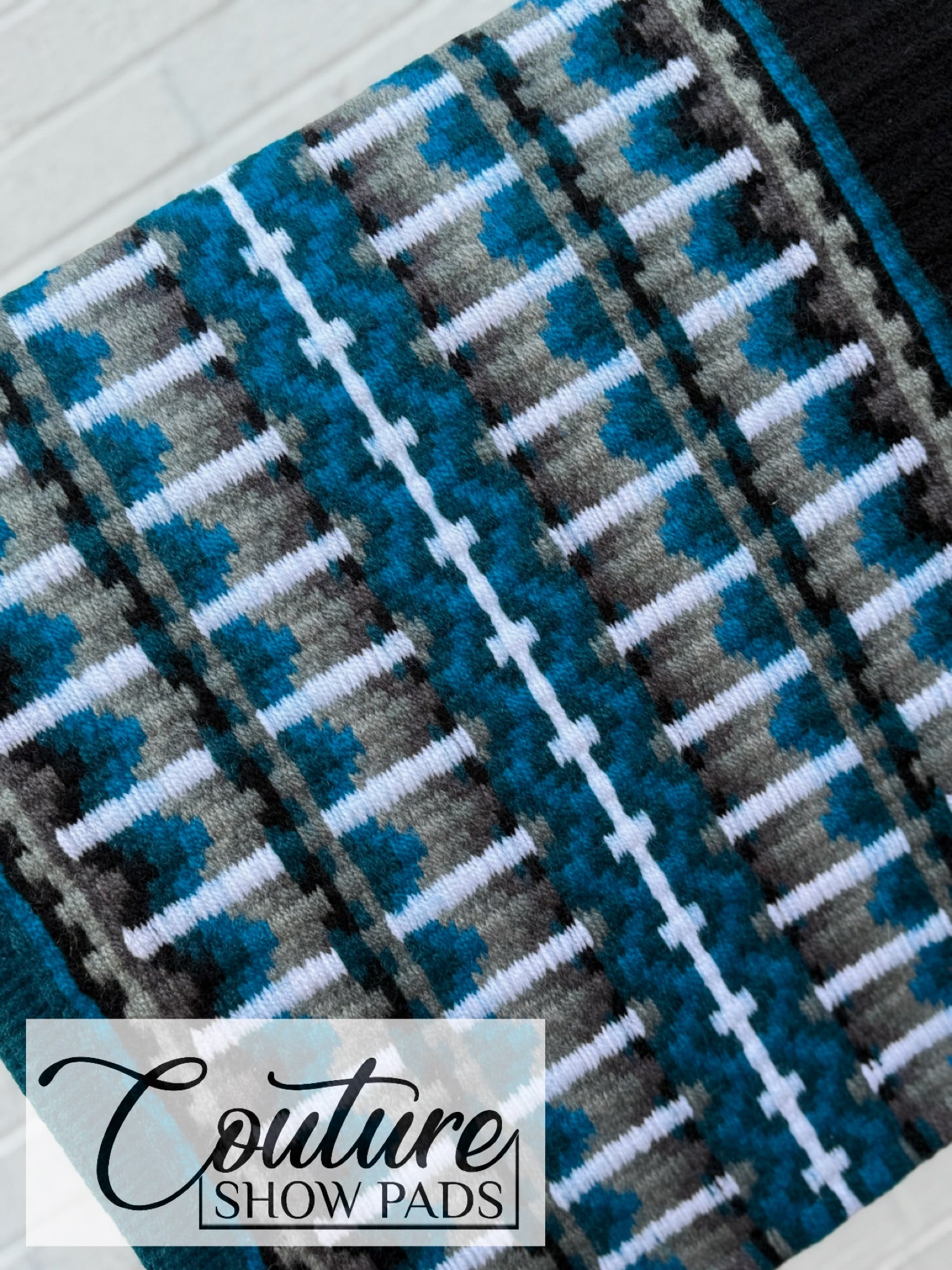Peacock Blue edge; a mix of shades of blues and grays with black & white accents.