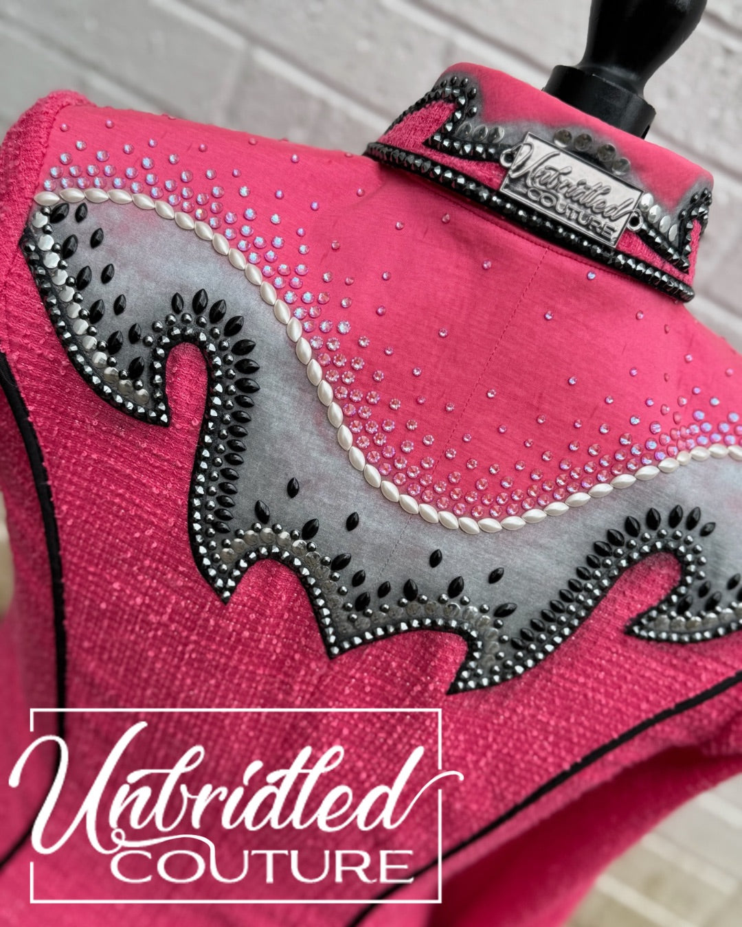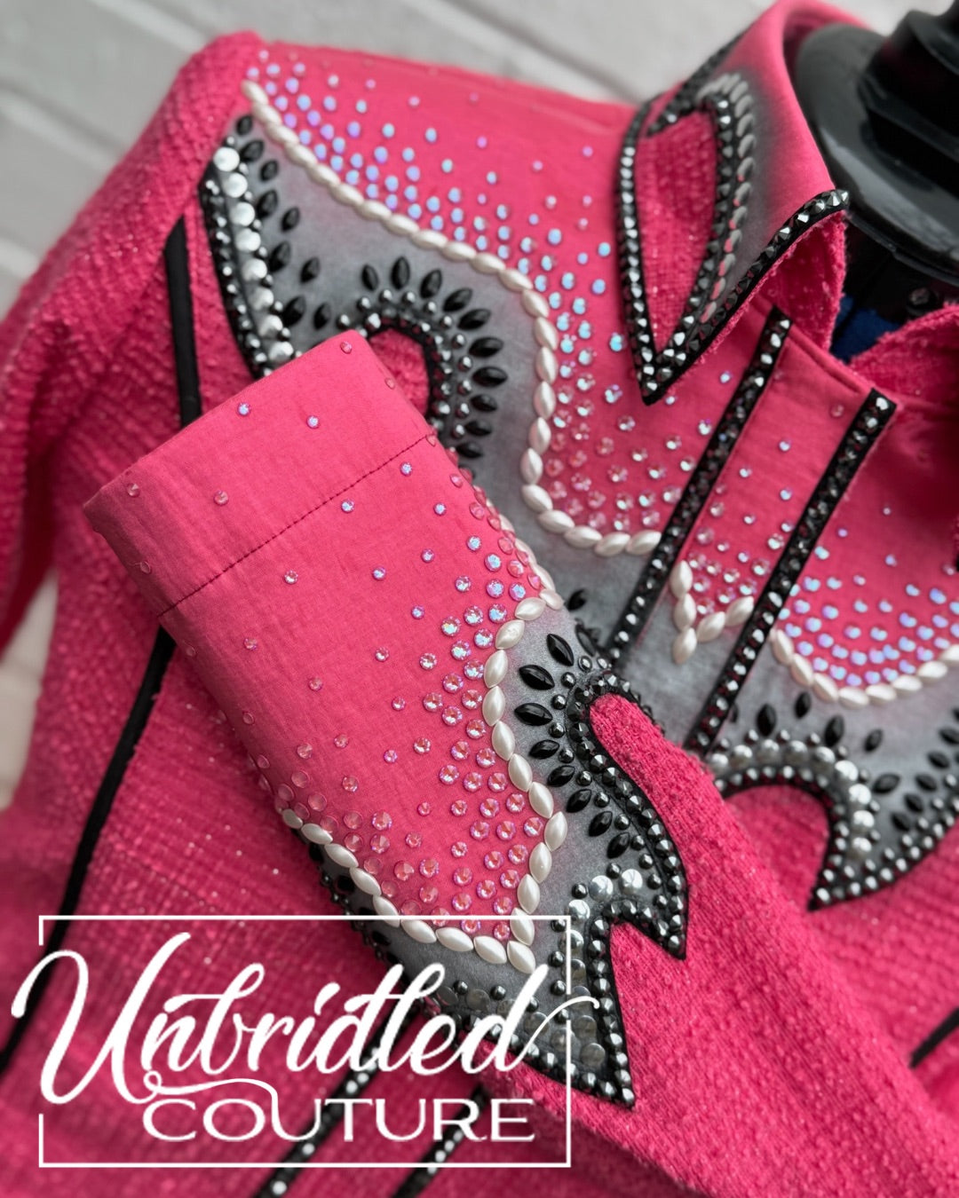 Pink textured stretch base day shirt with pink, gray, black, and pearl accents.